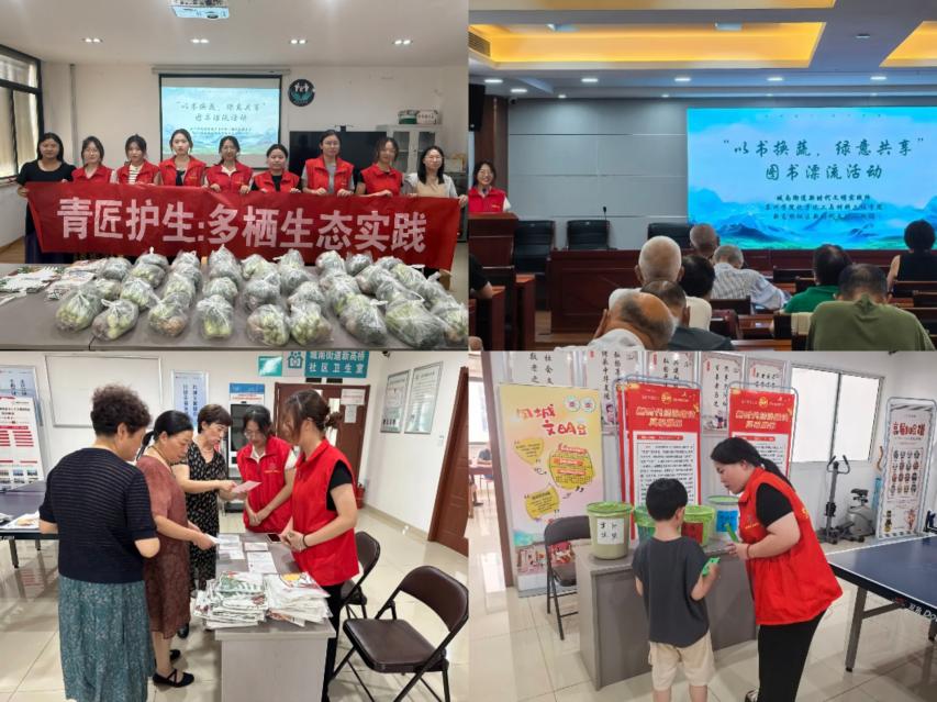 八月下旬,团队走进城南街道新高桥社区,开展“以书换蔬,绿意共享”图书漂流主题活动。通过生活化案例宣讲,向居民普及图书循环利用价值、垃圾分类知识与节能减排技巧,推动环保理念深入人心。在“以书换蔬”活动中,志愿者对居民捐赠的闲置书籍进行登记并兑换新鲜蔬菜,所收图书将用于社区“漂流图书角”建设,实现资源循环共享;环保互动区设置的垃圾分类投掷游戏吸引众多居民参与,团队成员耐心指导小朋友辨识“垃圾卡片”,并以环保帆布包作为绿色奖品,让低碳理念在趣味互动中有效传递。