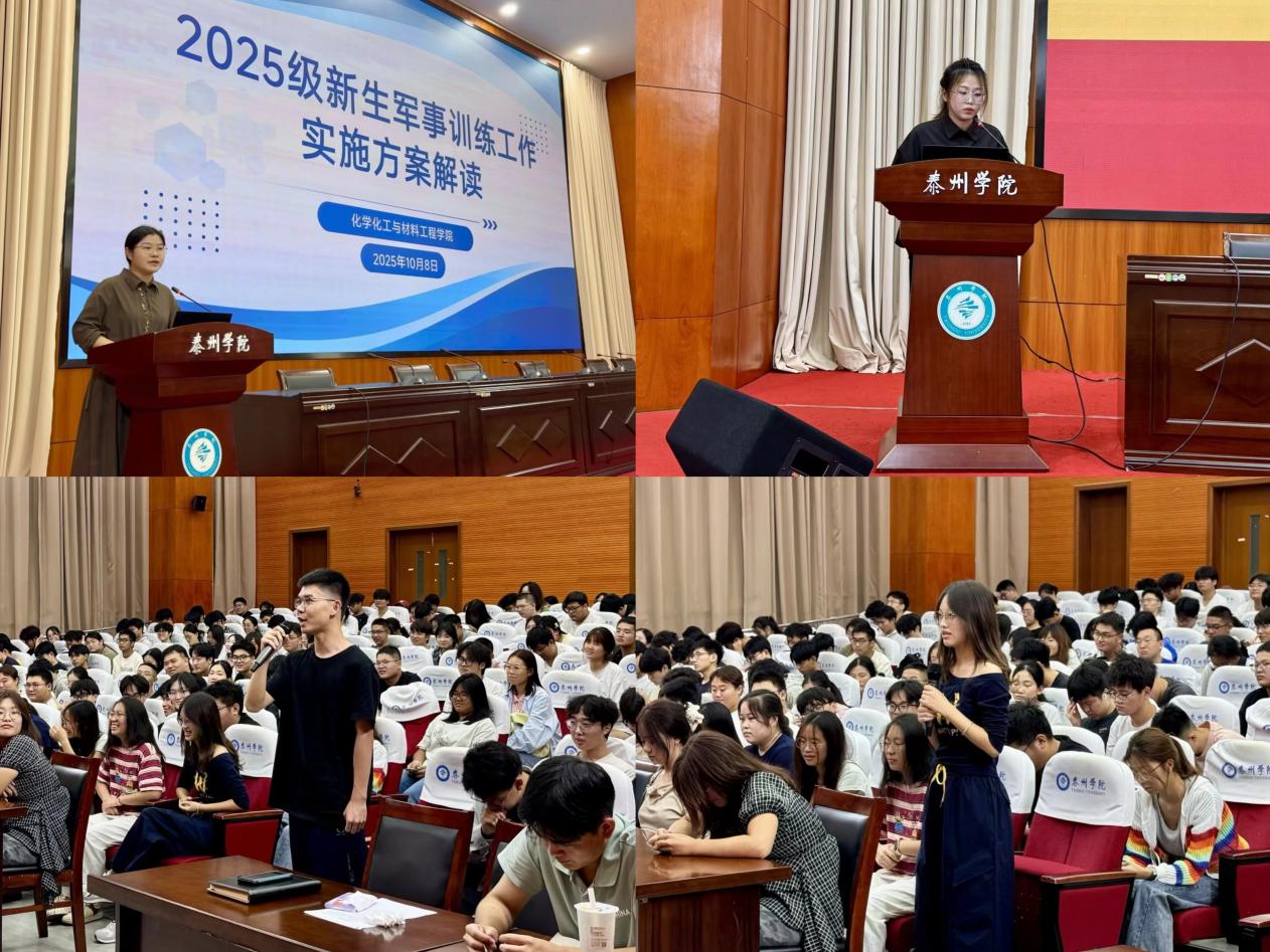 会上,高菲晨就《bevictor伟德2025级新生军事训练工作实施方案》进行详细解读,围绕军训时间、科目内容、考核标准、纪律要求、安全保障等方面作了系统说明,帮助新生全面了解军训安排,做好身心准备。应用化学专业新生张云喃作为员工代表发言,表达了对军训生活的期待与决心,承诺将以积极的态度、昂扬的斗志投入训练,发扬不怕苦、不怕累的精神,展现化材学子良好的精神风貌。